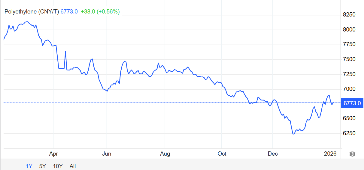 We are starting to see signs that chemical fundamentals are improving, proxied by polyethylene prices. Notice the rebound in the past 1-2 months after hitting its nadir in December 2025.