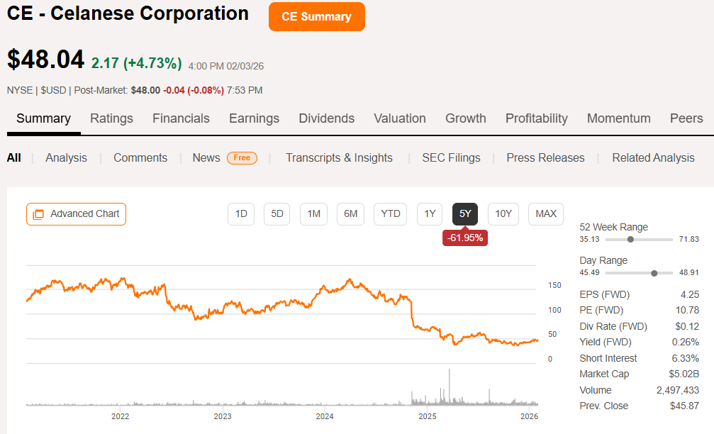 Disclaimer: I currently own Celanese stock and add or sell more at any time. This is not investment advice, please do your own due diligence.